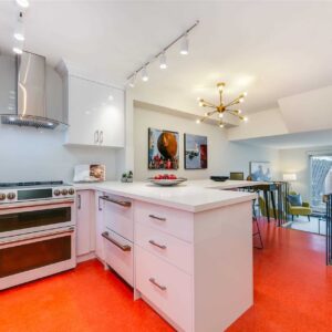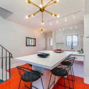 This stylish townhouse located in Leslieville offers an open-concept design and boasts a brand new, high-end kitchen with top-of-the-line appliances and an oversized dining peninsula. The spacious south-facing living room, featuring sliding glass doors that open up to a private yard, is perfect for relaxing and entertaining. Upstairs, you’ll find three bedrooms, including a generously sized primary bedroom with its own balcony.