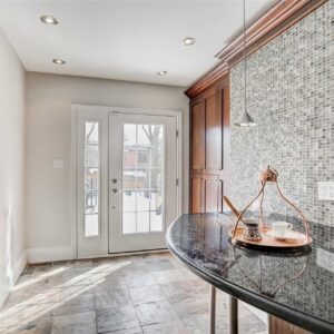 Introducing this stunning executive home with 3+2 bedrooms and 3 bathrooms, situated on a 37.5 x 133-foot lot that has been meticulously maintained. With over 2,700 square feet of living space, this home boasts a beautiful gourmet kitchen with granite countertops, as well as crown molding and wainscoting throughout the main floor. The living and office rooms feature leaded glass, adding to the home’s charm. The finished basement comes complete with a nanny suite and a separate entrance.