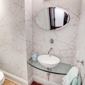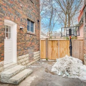 Outside, the home boasts a two-tiered deck with storage, a natural stone path, private parking, and is just steps away from Allenby and many other amenities.