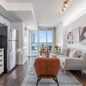 Wake up to the Lake! Embrace the pinnacle of urban living in this stunning 2-bedroom, 1-bathroom condo, nestled in the highly sought-after Fuzion Condos complex, just moments away from the bustling Liberty Village. This condo is a true urban gem, boasting a south-facing balcony that treats you to unparalleled views of the city’s skyline and the serene Lake Ontario.