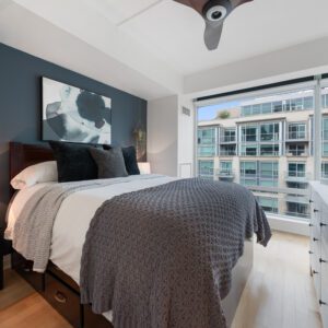 Inside, soaring 12-foot ceilings on the second floor and floor-to-ceiling windows flood the space with natural light and frame the skyline beautifully. The king-sized primary suite offers space, comfort, and tranquility.