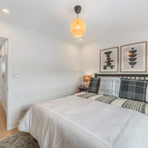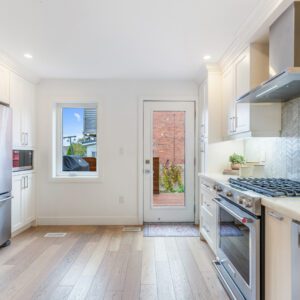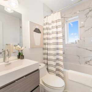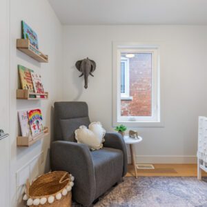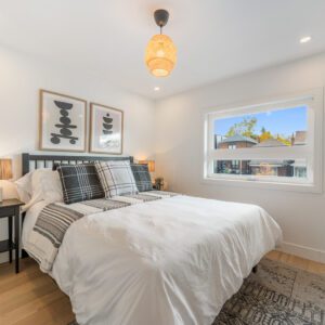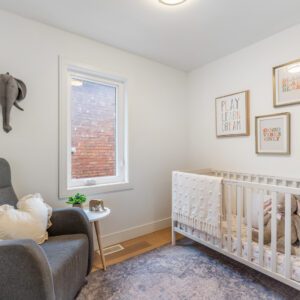 Natural light, filtering through multi-directional windows, illuminates the well-appointed bedrooms. A second-floor bathroom, a benchmark in stylish Toronto property design, comes complete with a bathtub, simplifying nightly routines.