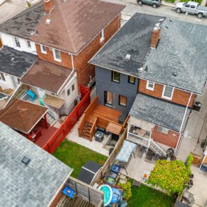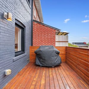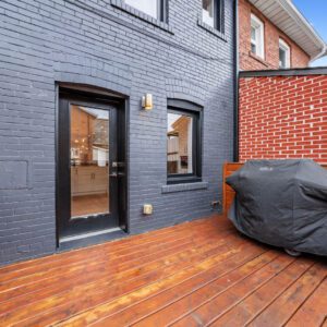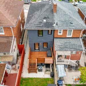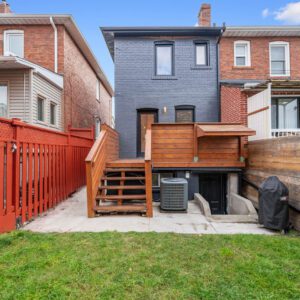 The outdoor space speaks to the essence of Toronto’s urban oasis – a spacious deck and a verdant backyard ready for gatherings or tranquil moments. For your essentials, a functional storage shed is at your disposal.