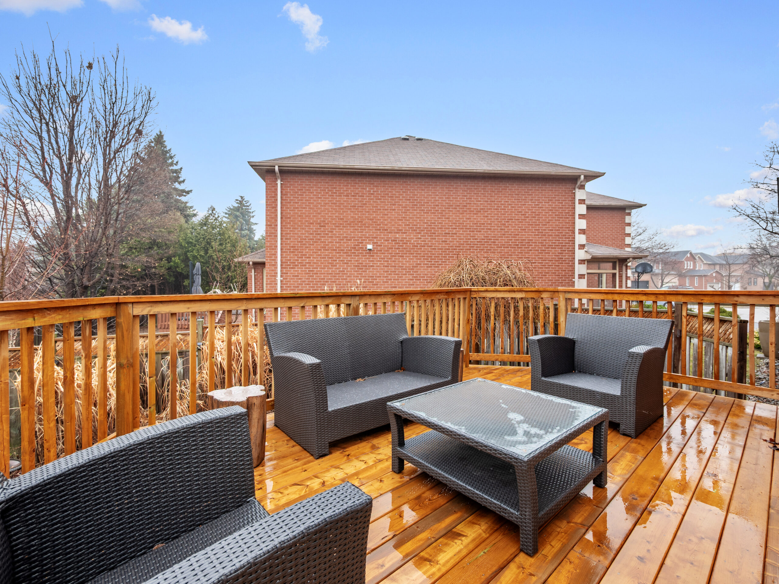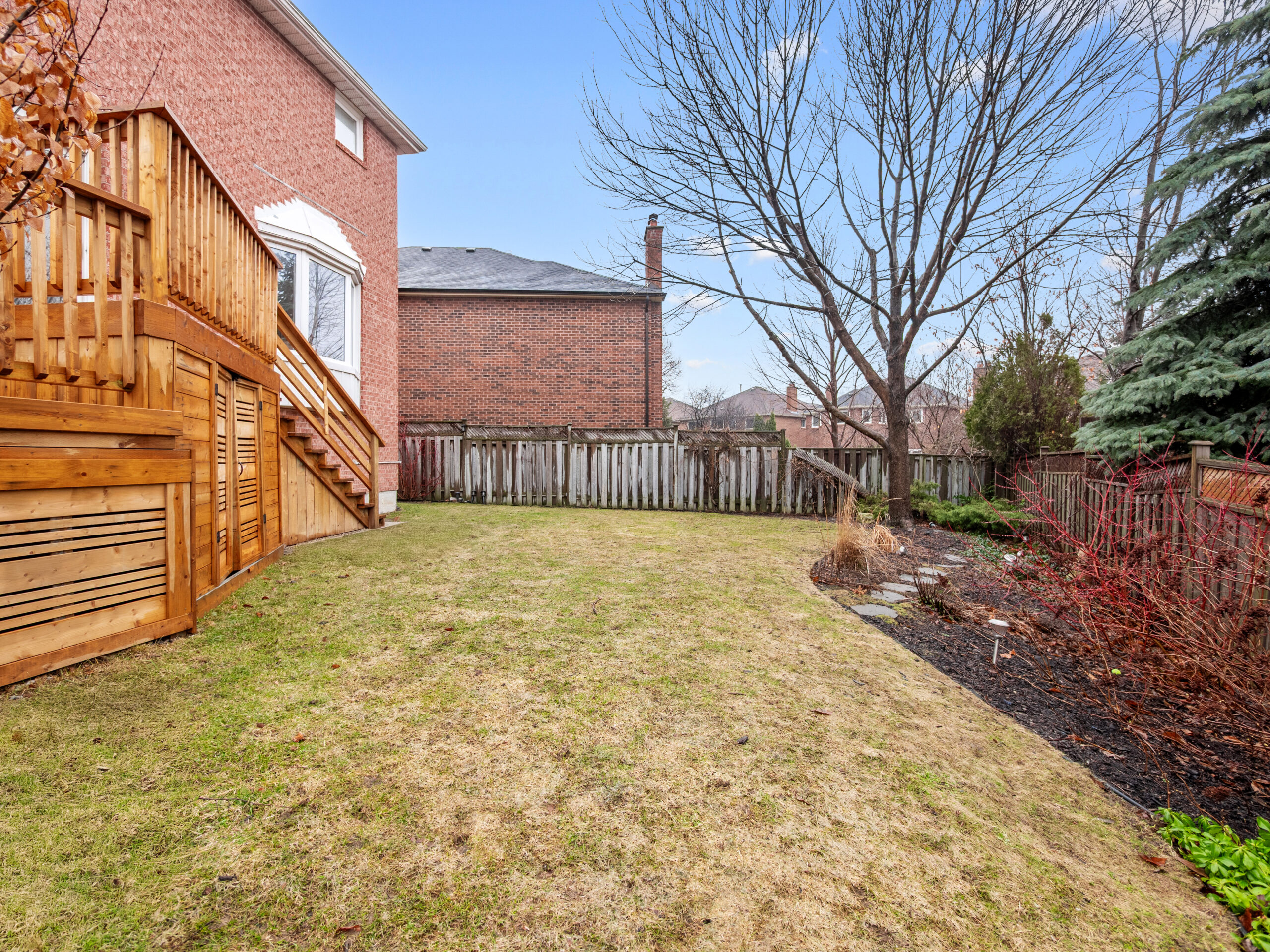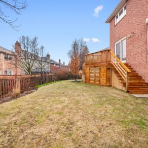 The backyard is where this property truly shines. Set on a rare pie shaped lot that widens to approximately 73 feet at the rear, the outdoor space feels expansive and private. A newly installed multi level deck creates the perfect setting for summer dinners, morning coffee, or evenings spent relaxing outdoors. Beautifully maintained landscaping surrounds the yard, including a charming butterfly garden that fills the space with colour and life throughout the warmer months.