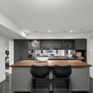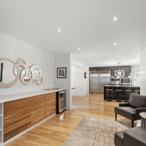 - Home theater/family room equipped with a full wet bar and custom cabinetry