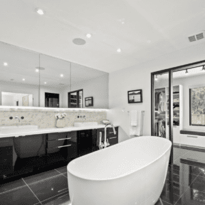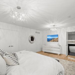 - Luxurious primary bedroom boasting a spa-like ensuite bath