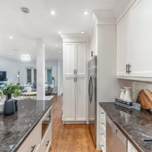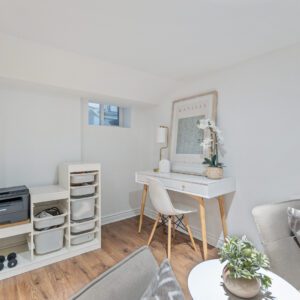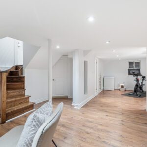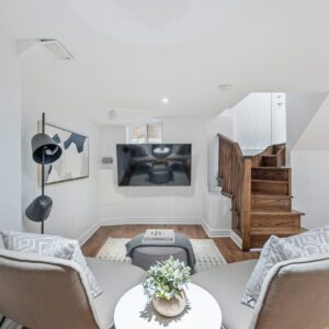 Discover the sophisticated charm of this residence as you step into an open-concept living, dining, and kitchen space on the main floor, perfectly designed for entertaining. A convenient powder room and a front hall closet further enhance the functionality of the space. Ascend upstairs to find a secondary bathroom and a lavish primary ensuite, crafted to provide the utmost comfort. The fully finished basement is versatile, serving as an excellent space for exercise or recreation, and features built-in shelves for all your storage needs.