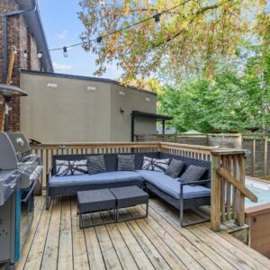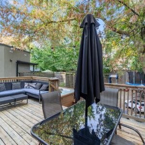 Relax and unwind in the delightful backyard, complete with a beautiful deck and ample green space, creating a serene outdoor oasis. Parking woes are a thing of the past with a legal front pad spot offering space for one car. This property ensures you experience the ideal blend of elegance and convenience, making it a perfect family home.